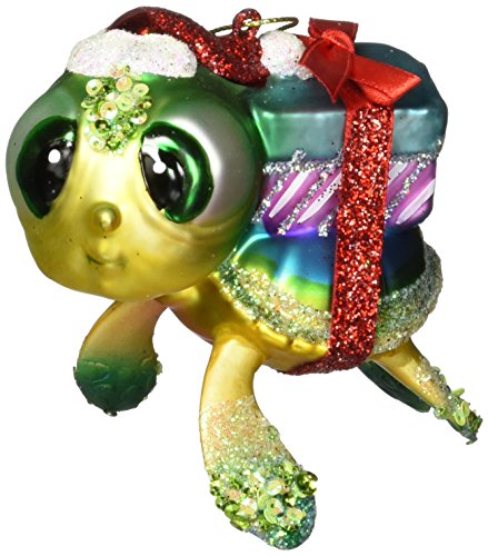 December Diamonds Blown Glass Embellished Sea Turtle with Presents Christmas Ornament
