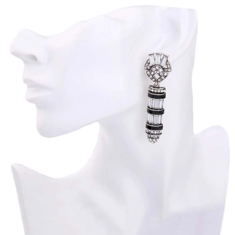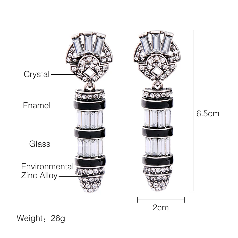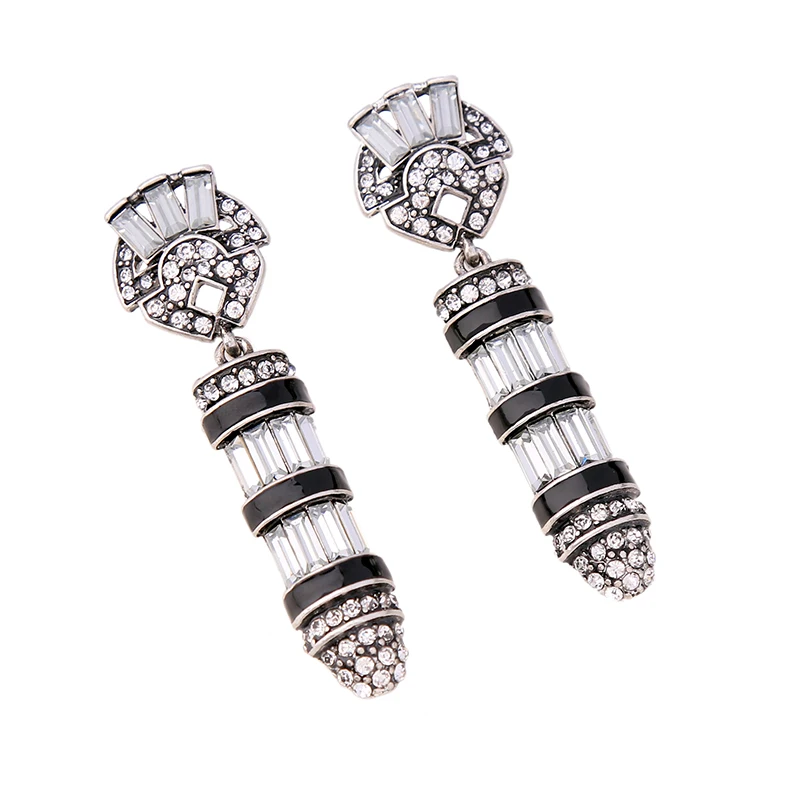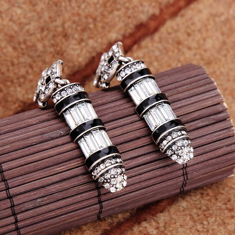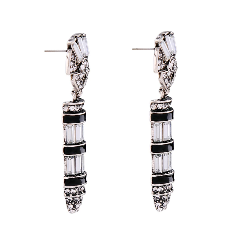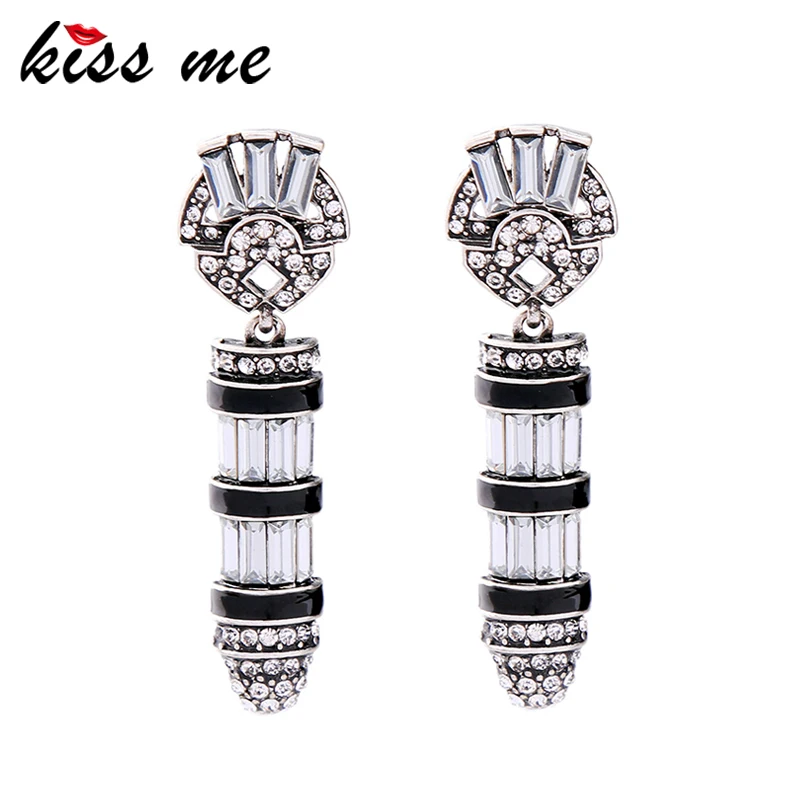 Production name ::KISS ME Black Enamel Geometric Glass Crystal Vintage Earrings