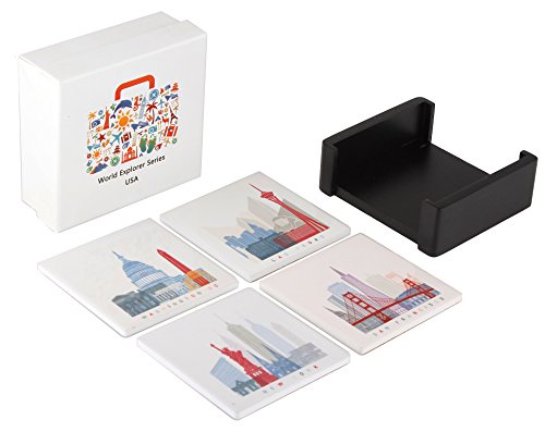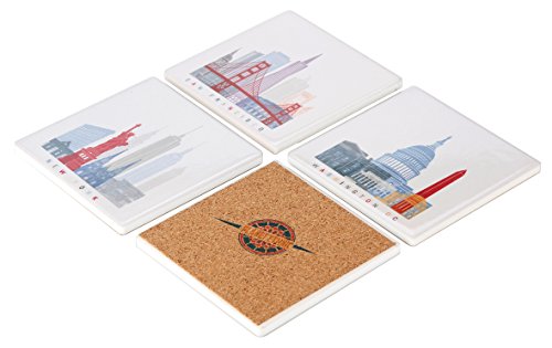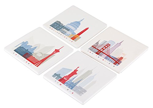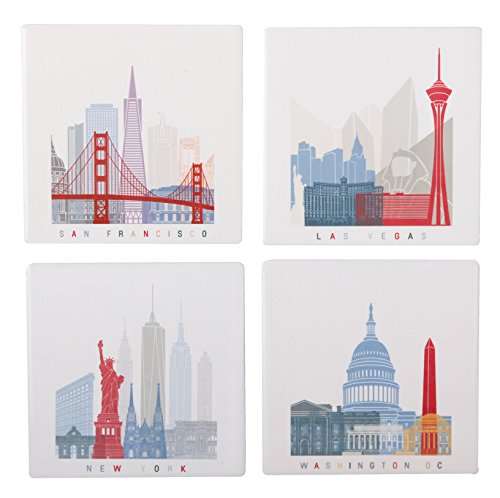 - Set of 4 designer coasters perfect for any travel enthusiast. Each coaster has famous icons long associated with these 4 amazing cities in USA.