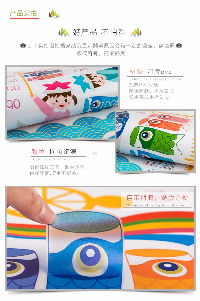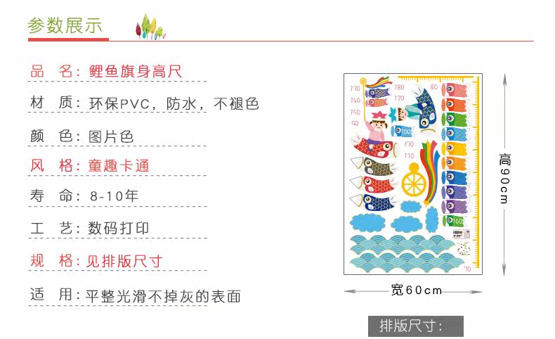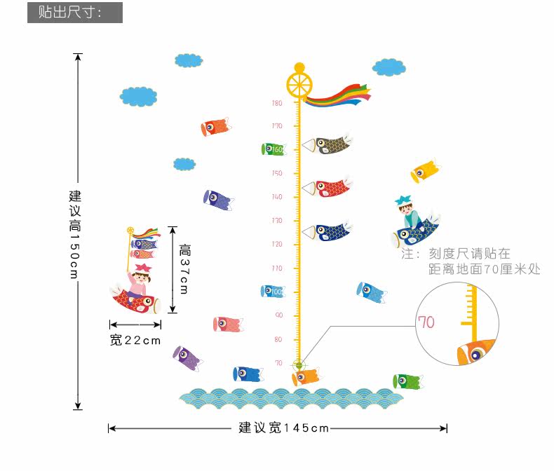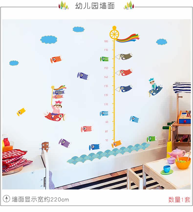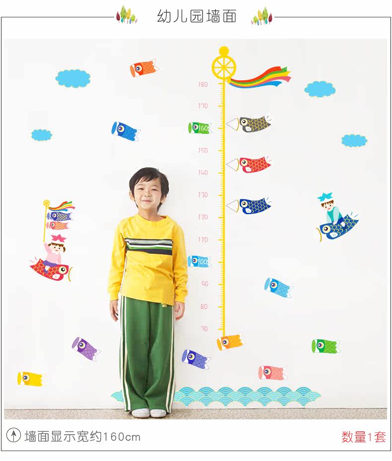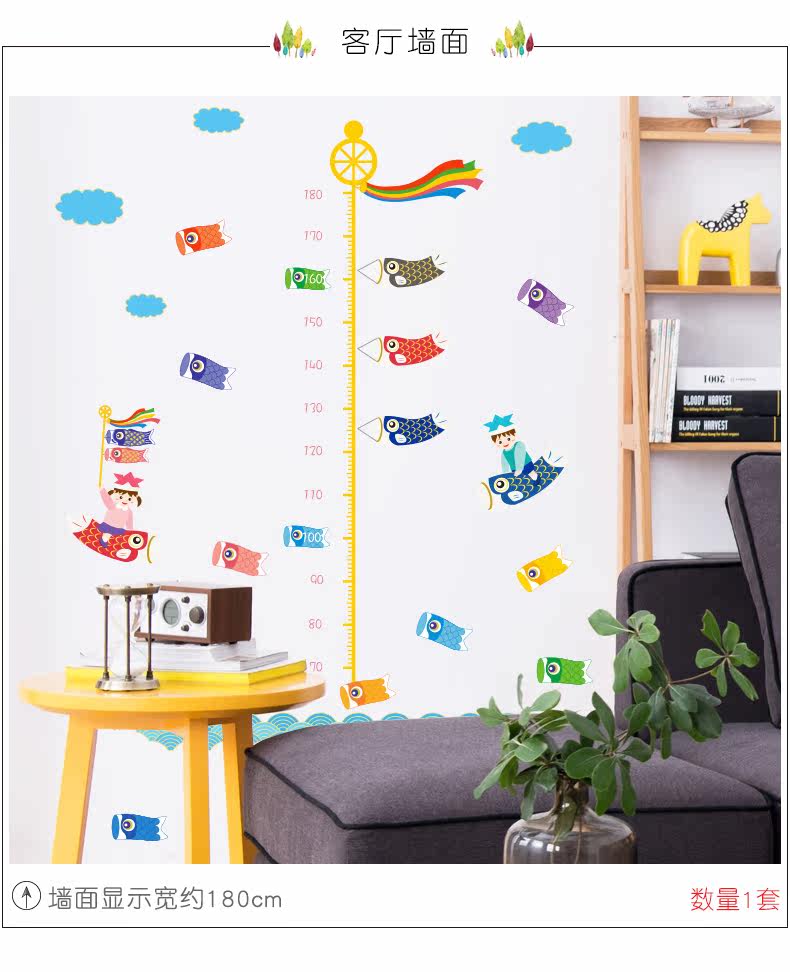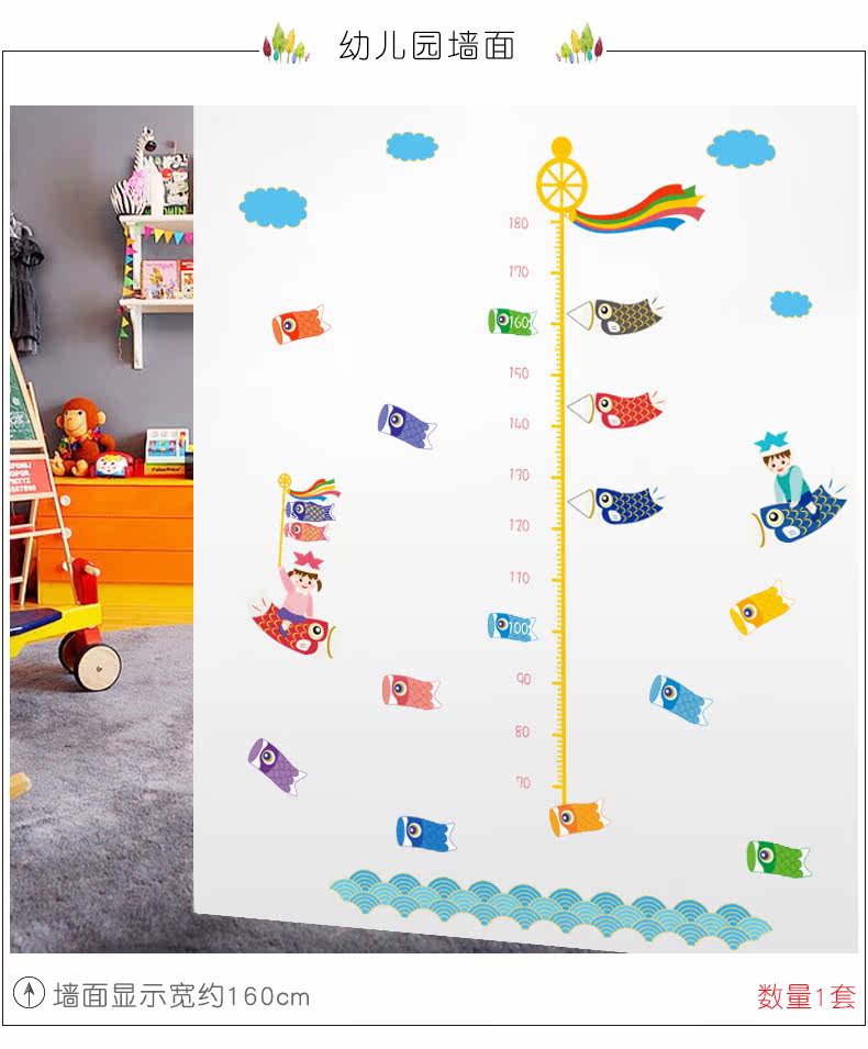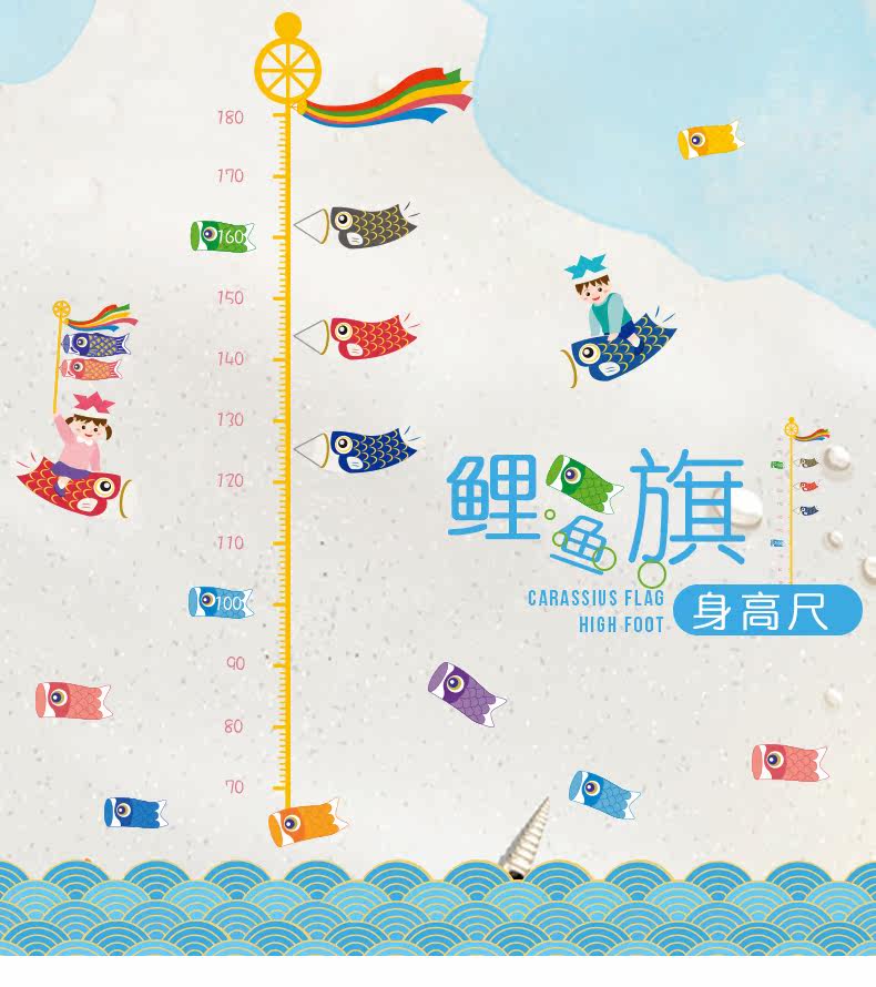 鲤鱼旗身高尺宝宝儿童身高墙贴纸可移除儿童房间卧室墙贴画装饰品