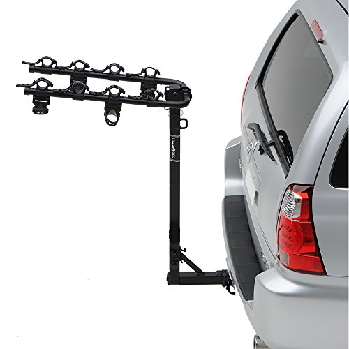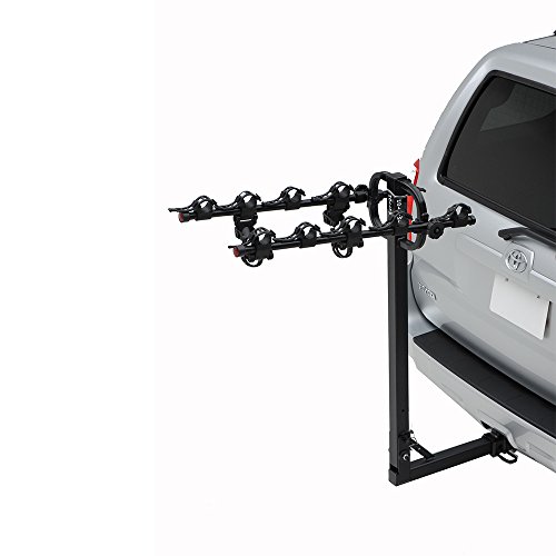Heavy-duty rack mounts on 1.25-inch or 2-inch hitch, holds 4 bikes