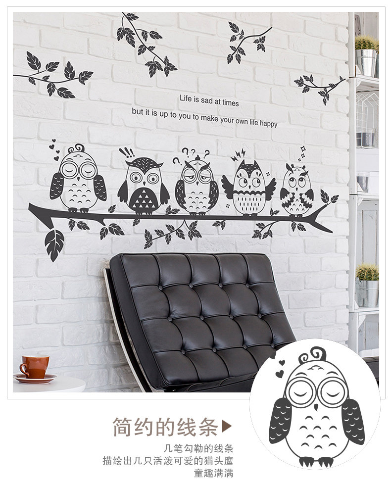 墙纸壁纸自粘墙贴卧室装饰品贴纸墙壁温馨贴画床头卡通呆萌猫头鹰