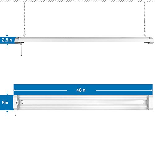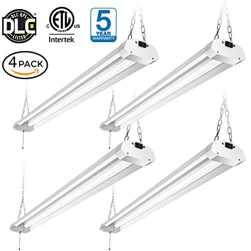 Linkable LED Utility Shop Light 4ft 4800 Lumens Super Bright 40W 5000K Daylight Ideal for Garage ETL/DLC Certified Durable LED Fixture with Pull Chain Mounting and Daisy Chain Hardware Included 4 Pack