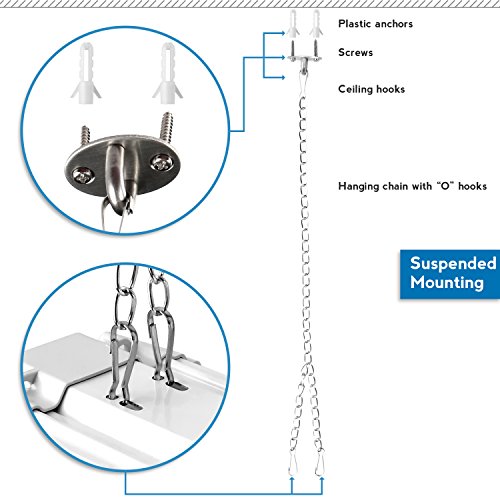 Included hardware kit and ultra light weight design make the installation truly hassle-free. Install the led shop light fixture by either suspended mounting or flush mounting. Simply plug and play.