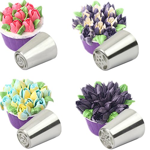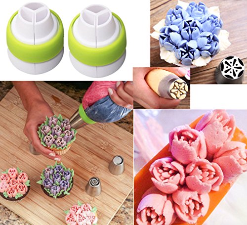 Russian tips cake decorating tools, which can create flowers like tuiple, 10 petal rose, 7 petal rose, wild rose, Scorpion Grass etc. instant, just a litte pressure on the pastry bag. Easy for a beignner baker to make that