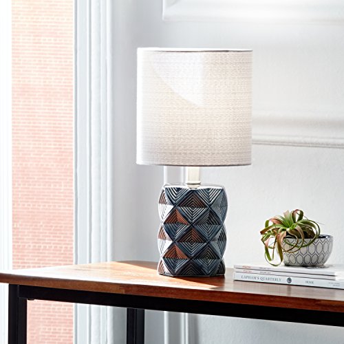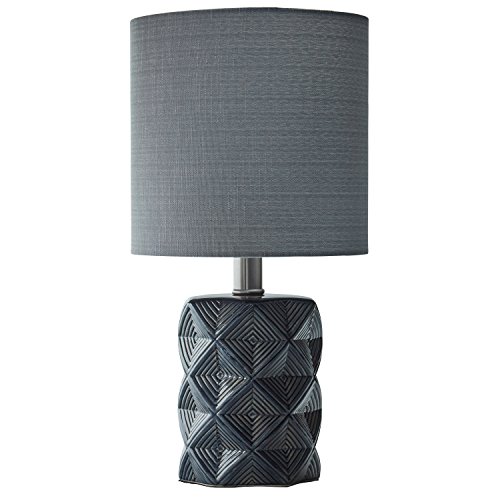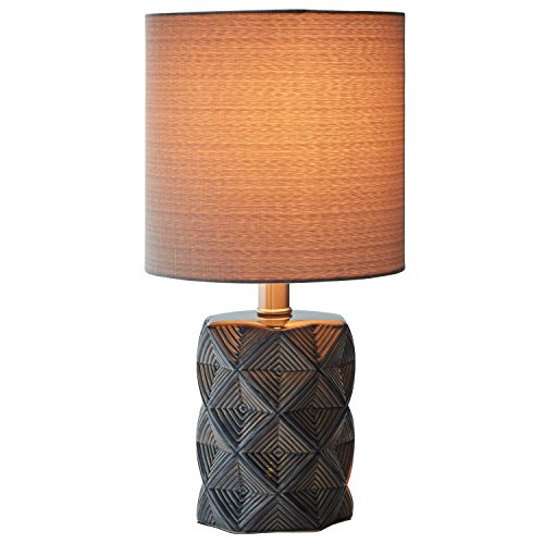 Rivet Geo Diamond Black Modern Ceramic Table Lamp With LED Bulb, 15"H, Grey