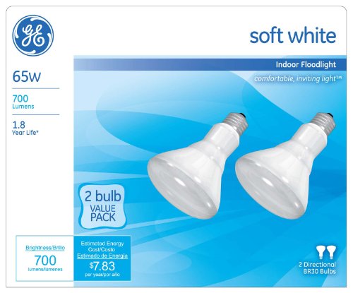 GE Lighting 18011 65-Watt Soft White Reflector Flood BR30 Light Bulb, 2-Pack