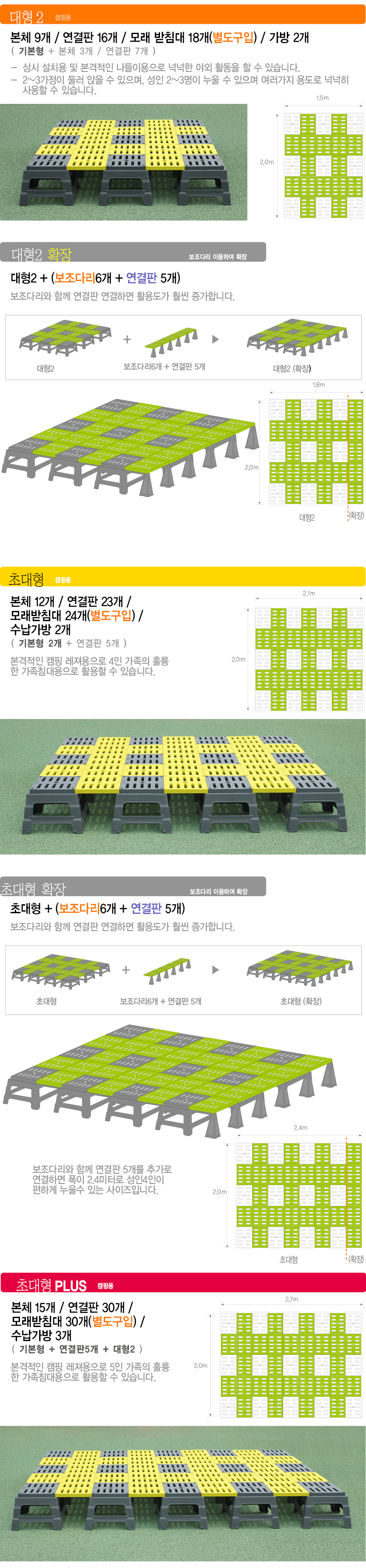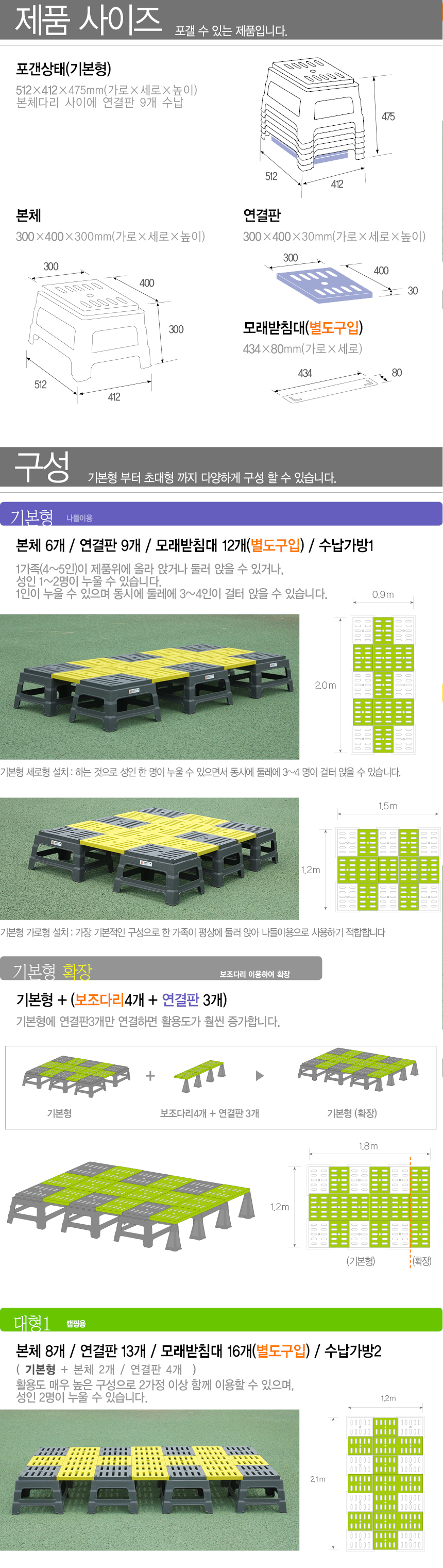 - 구성품기본형(본체6,연결판9), 대형2(본체9,연결판16), 초대형(본체12,연결판23)
