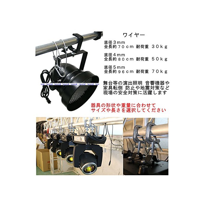 지진 대책에 내진 보강을 생각이라면 캔 탕 부착 폭넓은 용도 의 와이어로 결정입니다.스테이지 나 무대 스튜디오 의 조명 기구나 음향 기기 등의 낙하 방지 로도 수 많이 사용되고 있습니다
