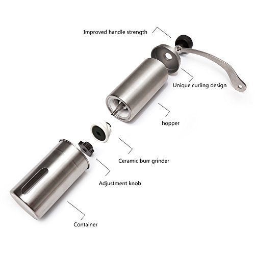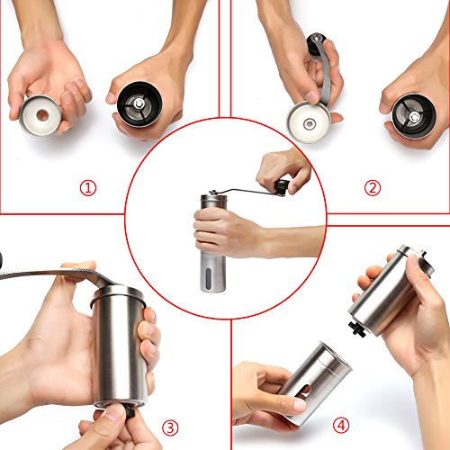 No-electric design:Mini manual grinder does not need battery, power, power cord and other power supply equipment, which is portable and easy to use. It is very suitable for traveling, camping, picnic and using Aeropress.