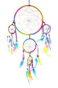 Dream Catcher with feathers wall hanging decoration ornament brightly colored ,d -16 cm., 40 cm. Long, 49994