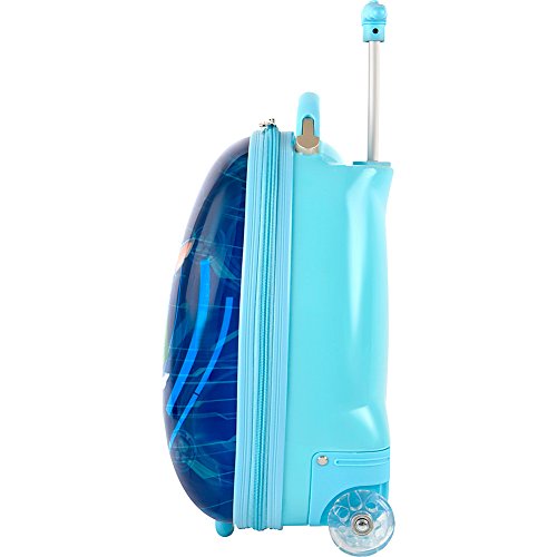 Product Description Designed especially for kids. The designer Nickelodeon Collection was created by Heys with the unique characteristics of children in mind, as it incorporates several design features that benefit children. Internal 'reversed-curved' handle system curves the handle inwards and upwards closer to the child, making it much more comfortable for the child - at a low height - to hold and navigate the case. Patent-pending design of this case also allows the wheels to 'protrude' out; the protrusion keeps the case elevated, so that even when being rolled at a very low height off the floor, the wheels will be the only point of contact and the case will continue to roll with ease. The rolling design bring the convince of full-sized luggage to a kid friendly size so they will have no problem maneuvering their suitcase through the airport. 0