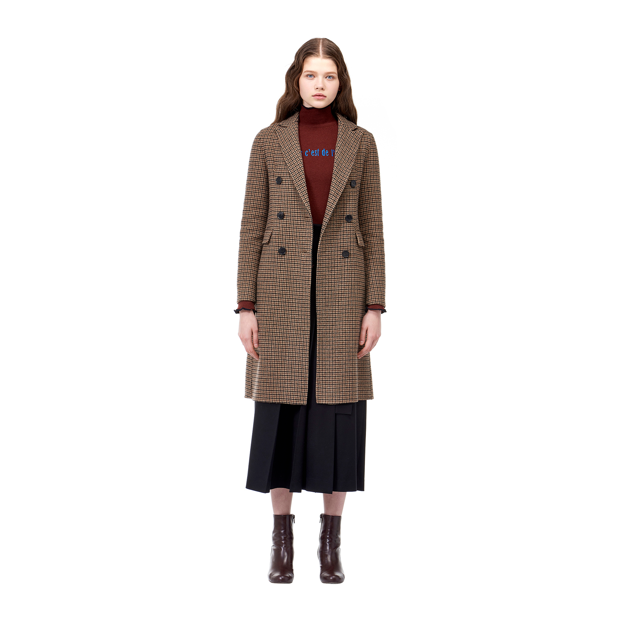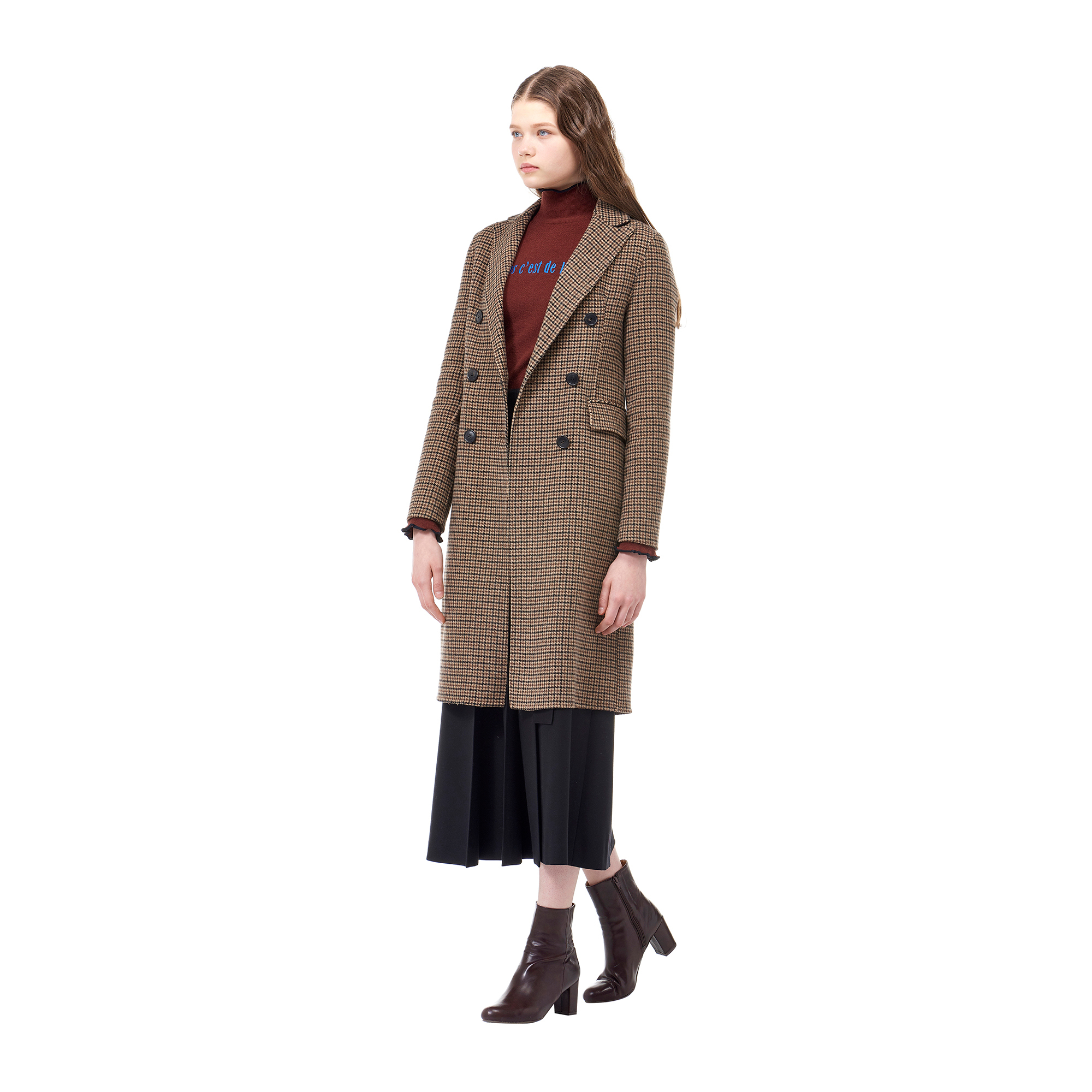 * 컬렉션 : 2017 Fall/Winter* 디자인 포인트 : - 체크 패턴 디테일이 돋보이는 울 블랜드 더블 코트- 더블 브레스티드 클로징이 깔끔한 디자인- 플랩 포켓 디테일로 실용성을 더한 아이템* 스타일링 추천 : 베이직한 니트웨어와 울 팬츠 등에 트렌디한 아우터로 스타일링 할 수 있음 *