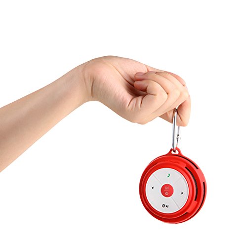 - Feature : With wireless Bluetooth 2.1+EDR technology, AUX input, the bluetooth stereo speaker is easy to connect the devices with Bluetooth function manually. Hands free function, answer calls right on it and holds a conversation through the built-in microphone / Palm-size compact (W3.05×D3.35×H1.81inch) and 7 ounces lightweight, the small bluetooth speaker is portable and easy for storage. High strength zinc alloy base with portable carabiner/sling, easy to hang in the backpack, bag, tent or even jeans, convenient and considerate accessories for outdoors like cycling, hiking, running, camping, and picnic / Support TF card music playing, high capacity 32 GB of TF card with high quality audio files stored, play main MP3/WMA/WAV/FLAC/APE format audio files, good sound quality out of your expectation. Support Line in with built-in card reader to exchange data directly, automatic shutdown after suspension without operation for 10 minutes, skip songs and forward/back/pause/play and control voice volume from the wireless bluetooth speaker / Built-in efficient and safe li-on battery (600mAh of capacity), micro USB charging is available, 4 hours Playtime empowers you with much more fun. The outdoor bluetooth speaker is compatible with all standard Bluetooth devices: PC, Laptops, iPad, Tablet, iPhone, Samsung, Blackberry and other smart phones / 18 months hassle-free warranty, 30 days return & exchange, Answer to customer's queries within 24 hours (Customer Service) Package includes: Bluetooth speaker, micro USB to USB cable, 3.5mm audio cable, hook (carabiner), user manual,warranty card