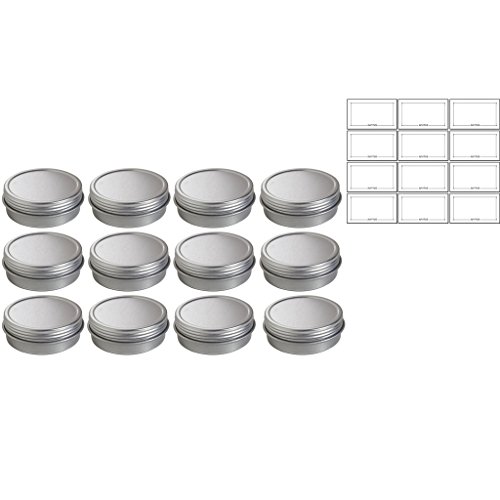 1 oz Metal Steel Tin Flat Container with Tight Sealed Twist Screwtop Cover (12 pack) + Labels