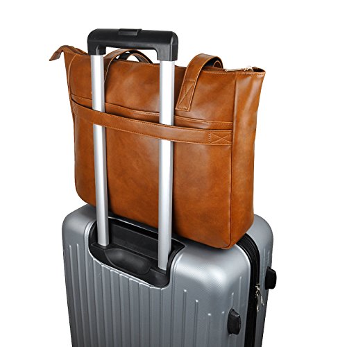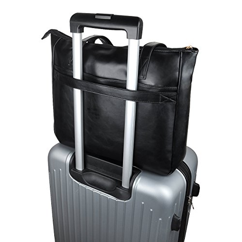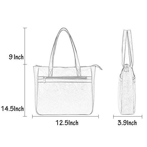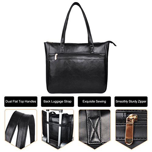 -. Feature : WOMEN LAPTOP TOTE BAG--Classic concise design women laptop bag up to 15.6 inches size,everyday carrying for work travel as a shoulder bag tote bag / INDEPENDENT LAPTOP PROTECTIVE LAYER--One main protective layer about 0.6cm thick with top elastic clasp,it is enough safety for your laptop or other important things / ADVANTAGE--1.Double durable shoulder straps back side with strong canvas,it isn't easy falling apart;2.the bag front side with a strap can fix to suitcase when travel;3.main center independent padded laptop layer,small organizer place for pen. / LAPTOP TOTE BAG DIMENSIONS--14.5Inch(H)X 12.5Inch(L)X 3.9Inch(W),double shoulder straps about 23cm/9" / MATERIAL AND DESIGN--Modest size and capacity,soft external material and durable lining,perfect for casual work business/all-purpose use