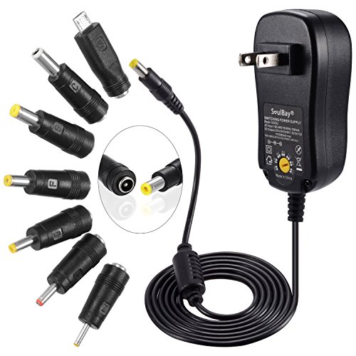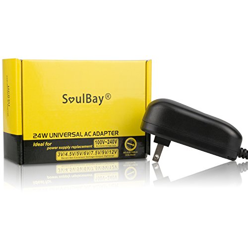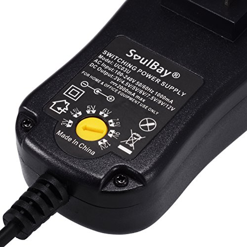 [Upgraded Version] SoulBay Universal AC/DC Adapter Multi-Voltage Regulated Switching Power Supply with 7 Selectable Adapter Plugs, for 3V to 12V Home Electronics and USB Charging Devices - 2Amps Max