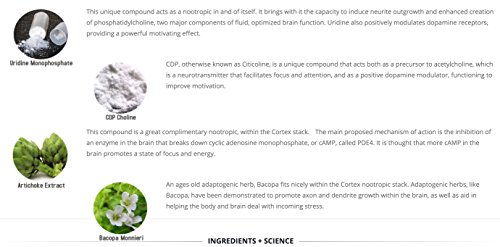 -. Title : Cortex Nootropic Stack - Powerful Brain Supplement For Increased Mental Performance - Uridine Monophospate, Bacopa Monnieri, Artichoke Extract, CDP Choline