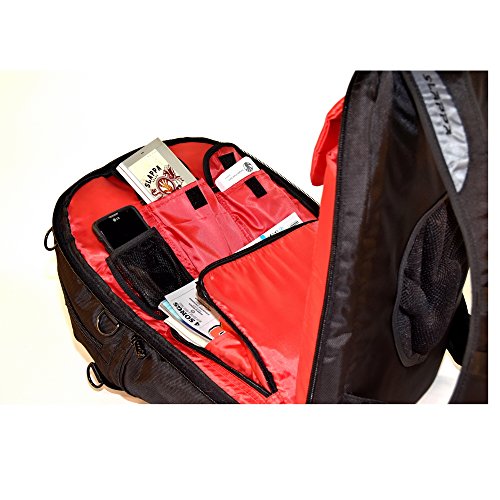 -. Feature : Quick scan access enables laptop to stay inside backpack when scanning at airport / Super-cush dedicated laptop storage for large gaming computers / Backpack is puncture proof and water resistant