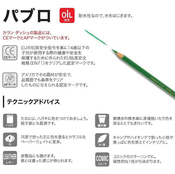 アーティストやプロの方のニーズに応えられる油性色鉛筆です。3.7mmのソフトな芯。パステルと色鉛筆を合わせたようなやわらかな描き味で、塗りつぶしが容易にでき、しっかりとした画面に仕上がります。高品質の顔料を使用しているので発色が良く耐光性に優れています。 |