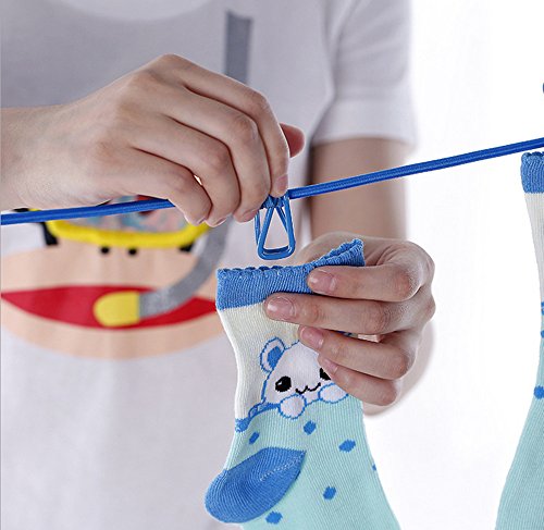 Retractable Clothesline by I-Choice, Lightweight Portable Travel Elastic Clothesline Adjustable Windproof Photo Clothesline with 12pcs Clothespins for Outdoor and Indoor Use (Color:Blue) (6.06 feet)
