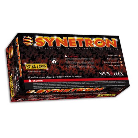 Microflex Synetron Powder Free Latex Gloves, Extra Large, 50/Bx
