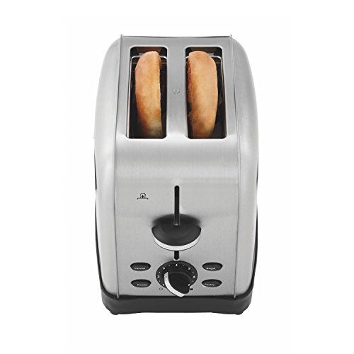 Toast in style! The modern, sleek Oster Brushed Stainless Steel 2-Slice Toaster uses advanced toast technology to provide consistent toasting results for a satisfying toasting experience everytime. Designed with wide slots and auto-adjusting guides that accommodate bagels and other thickly-sliced breads for even toasting. Versatile preset buttons including PASTRY, FROZEN AND BAGEL for toasting just the inside of bagels, so they don't toast with a too-hard-to-bite outer crust. Seven adjustable shade settings customize toasting to exactly how you like it and the cancel button pops toast on the spot, stopping the toasting cycle at any time. Toast lift lever gives toast a little lift up to conveniently retrieve food without getting close to heating elements. Removable crumb tray makes cleaning easy too!Feature