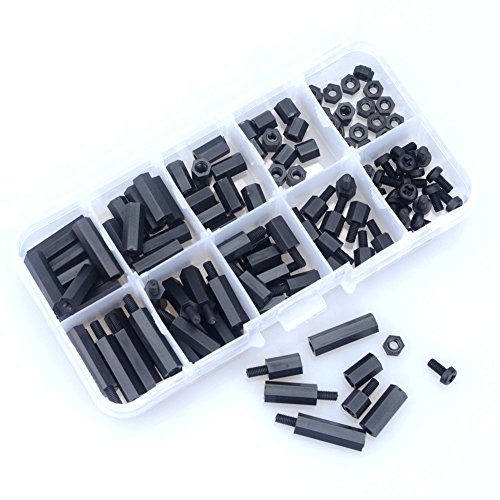 Hilitchi 120Pcs M3 Nylon Hex Spacers Screw Nut Standoff Plastic Accessories Assortment (Black)
