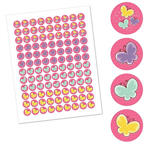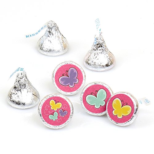 Playful Butterfly and Flowers - Party Round Candy Sticker Favors – Labels Fit Hershey’s Kisses (1 sheet of 108)