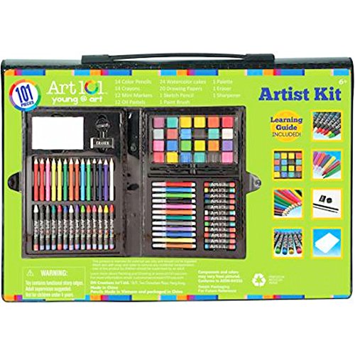 101 piece artist kit is excellent for a young artist. The kit includes learning guide! Great gift!