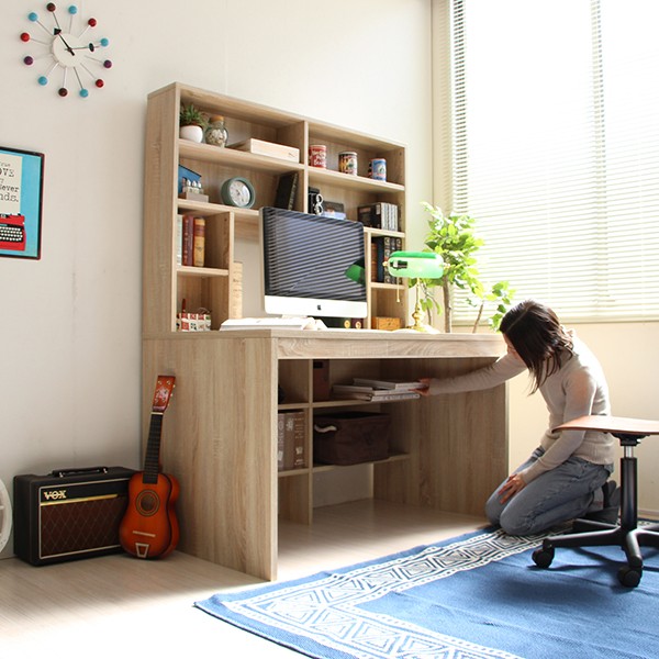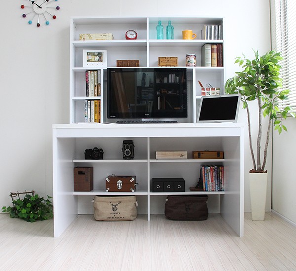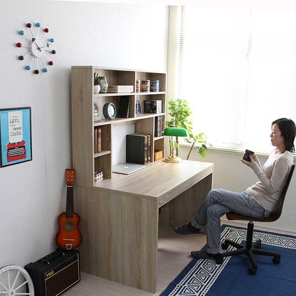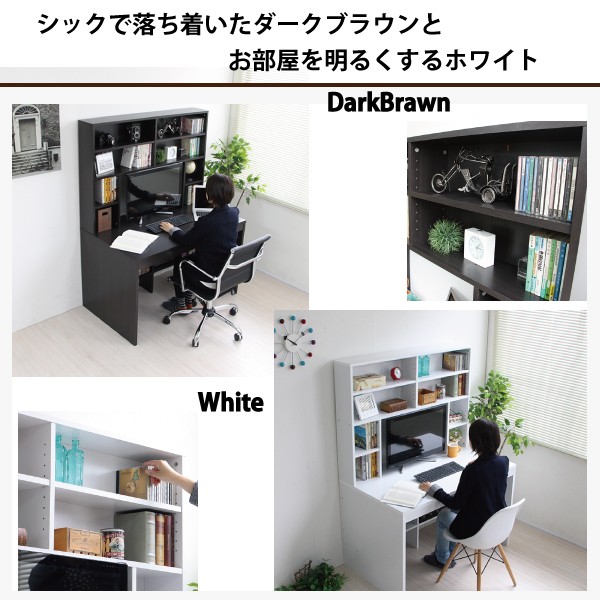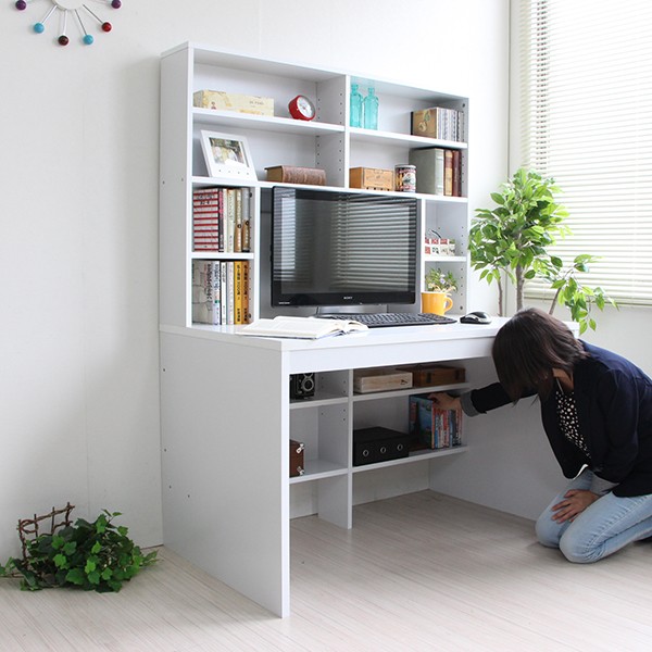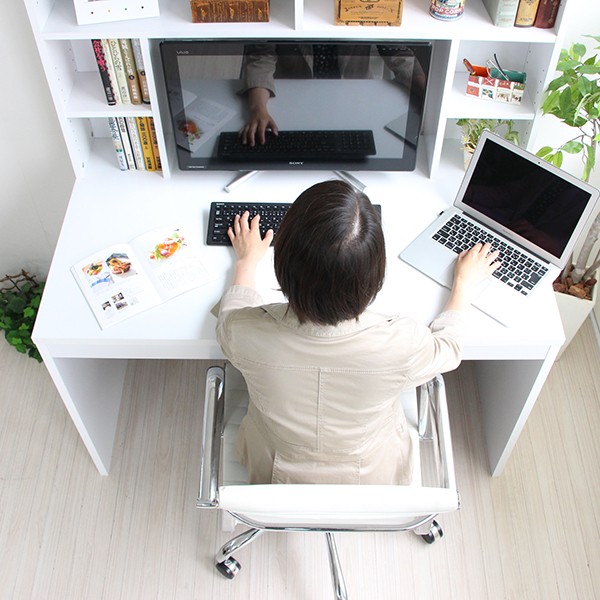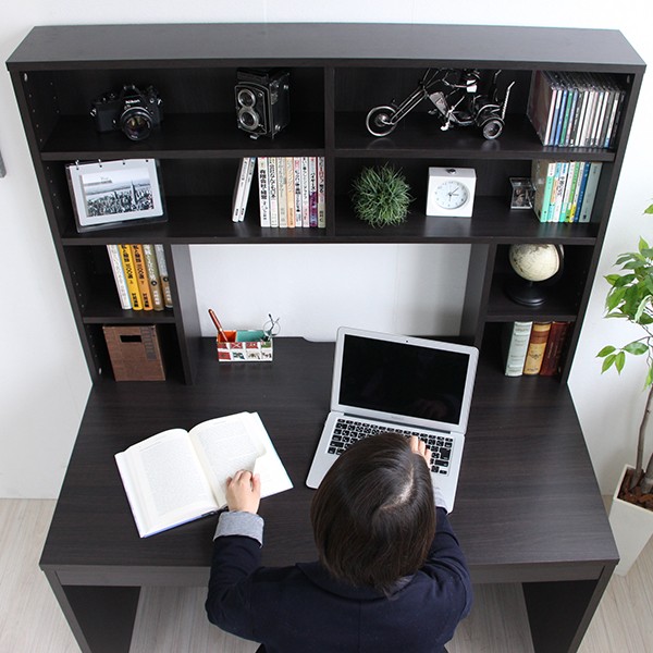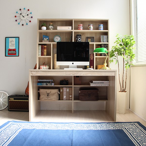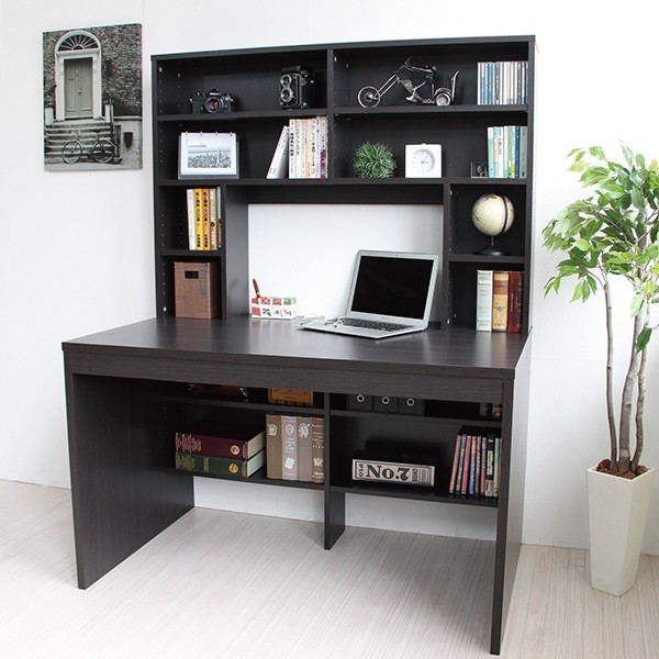 送料無料 パソコンデスク ハイデスク 書棚 120cm幅 書棚デスク ハイタイプ 省スペース シンプル pcデスク 北欧 おしゃれ 収納 木製