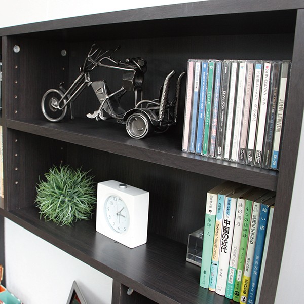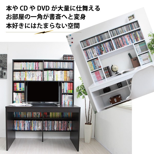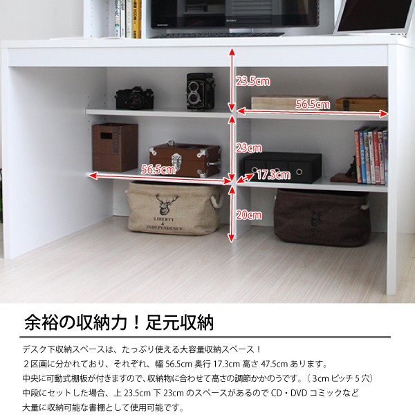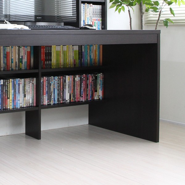 ■デスク脚元にはコミックやCD,DVDの収納に便利な足元書棚が付きます。