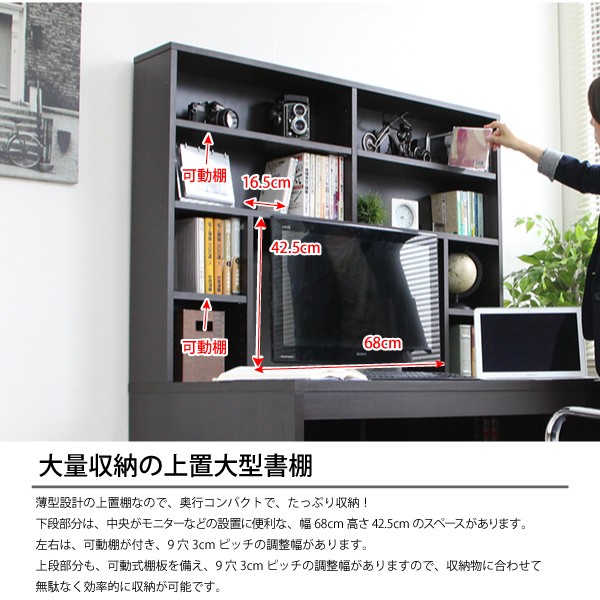 ■デスク上部には、上置大型書棚が付きます。