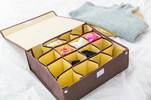 -. Feature : 16 Grid Size: 35 x 30 x 12 cm; 24 Grid Size: 44 x 30 x 10 cm / Neatly store and classify underwear, socks, neck ties, scarves etc / Made of high quality non-woven fabric, the Opening with Velcro design, with no trace, dust more effectively / Foldable to be kept when it is not used, convenient to use, Design in simply and lightweight appearance,saves space for you / Attached lid can be folded under when used inside the drawers or closed for stackable dust free storage in the closet or bedroom