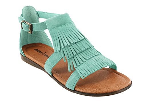 Sandal with fringed vamp featuring solid heel cup and small, faux-wood wedge Ankle strap with buckle closure Textured outsole Brand : Minnetonka Item model num : Maui MPN(PartNumber) : 71302-BAZ EAN : 0887449083708 Product Dimensions(LxWxH) : 34x21x16cm ; 635 g