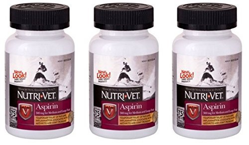 As dogs walk, run, jump and play, tremendous stress is placed on all components of ther joints. Years of wear and tear from exercise, normal aging, disease, injury or genetic conditions can break down cartilage, leading to instability and discomfort. Nutri-Vet bone and joint supplements are specifically formulated to support structural integrity of joints and connective tissues in dogs, and aspirin helps reduce pain in dogs of all ages, breeds and sizes. Liver flavor chewables minimize the potential of stomach upset and maximize taste and aroma. 300 mg per tablet for dogs over 50 lbs body weight.Feature