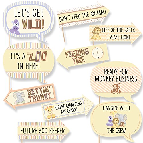 Funny Zoo Crew - Baby Shower or Birthday Party Photo Booth Props Kit - 10 Piece