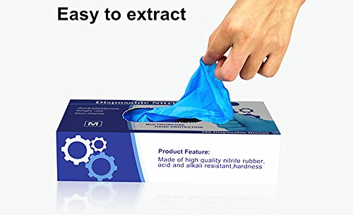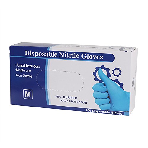 Blue Nitrile Gloves - Disposable, Textured Surface - Powdered Free - Perfect for Clean Tattoo Medical (Box of 100)(Medium)