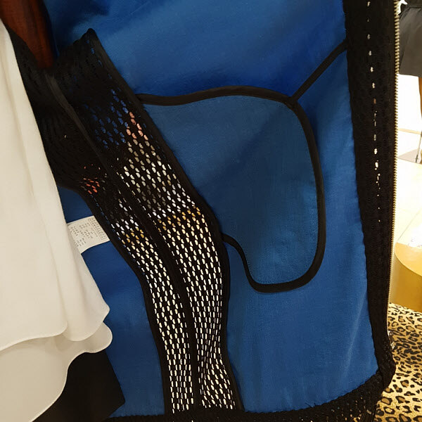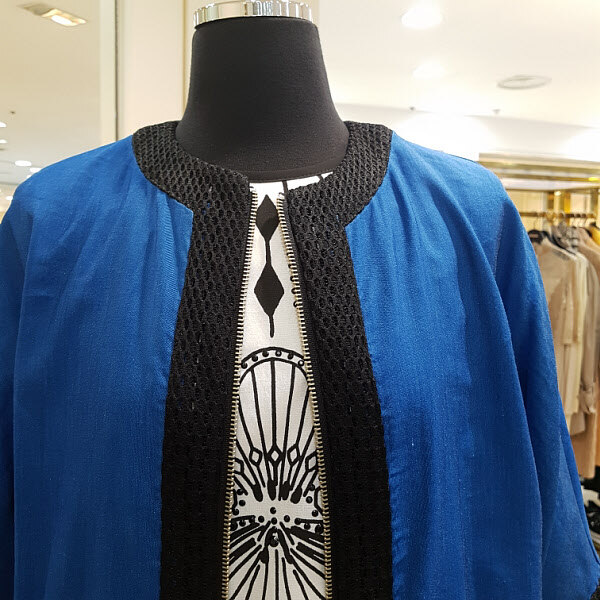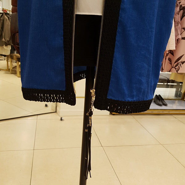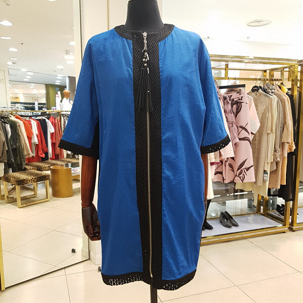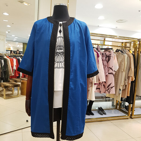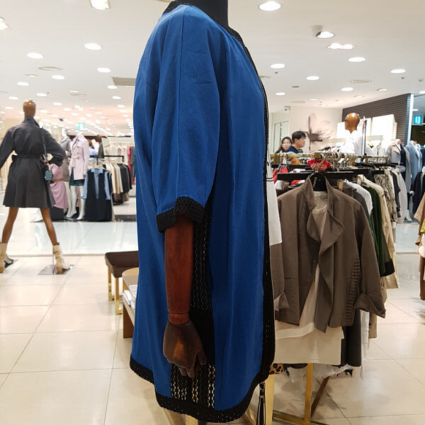 블루의 강렬한 컬러가 산뜻함을 연출해주며 블랙펀칭으로 마무리 배색이 들어가서 깔끔하고 고급스런 분위기까지 보여지는 바바리 디자인입니다.테슬장식이 젊은 분의기연출을도와주는 아주 멋스런 스타일입니다.