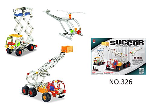 -. Feature : Assembly Metal Model Kits. Set includes 3 designs Crane, Helicopter and truck / 691pcs metal blocks. Include good quality real tools - screwdriver, nuts and bolts, and the instructions. / Have fun when playing, meanwhile develop kids thinking and manipulative ability and enhance their intelligence, kids favorite toy! / Pull back and go style offer kids realistic playing fun. / Suitable for 8 years and above old (5 to 6 years old can be accompanied by parents for parent-child interaction).Really an ideal toy for father and children play together,make your family closer. CHOKING HAZARD -- Small parts, not for children under 3 years