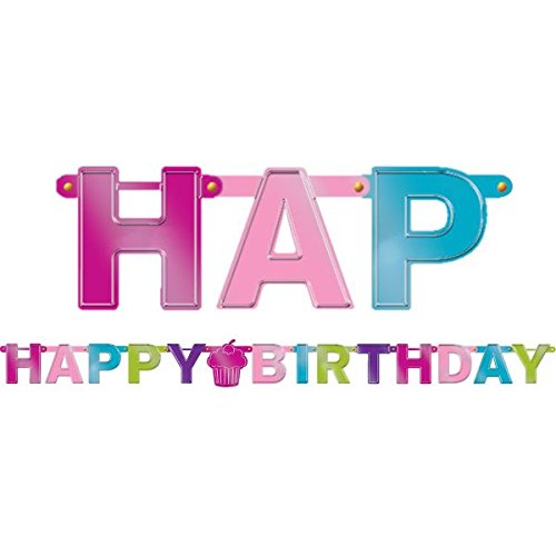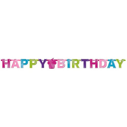 Product Description The girly party accented with a girly multicolored “happy birthday banner with a cupcake. Measured to perfection for many uses during a birthday celebration. 0