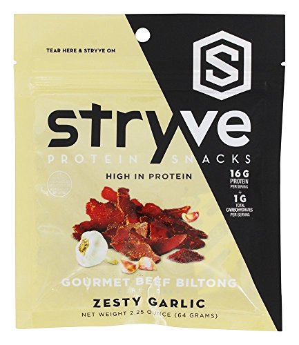 -. Title : Stryve Protein Snacks Gourmet Beef Biltong, Zesty Garlic, 2.25 Ounce