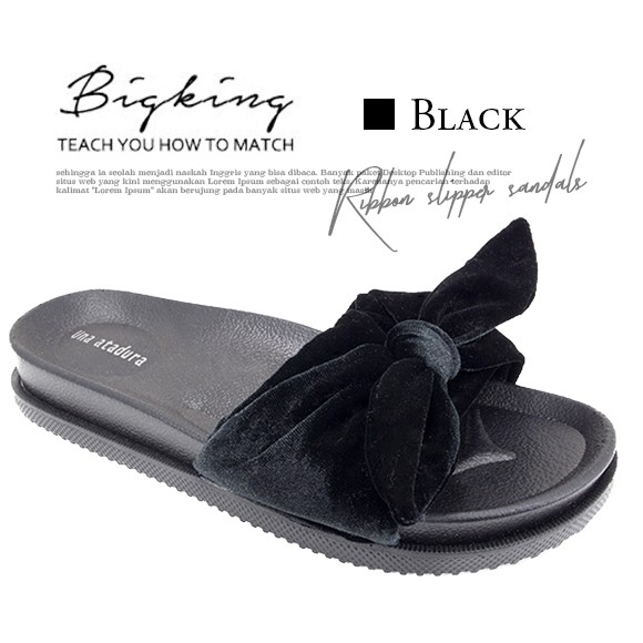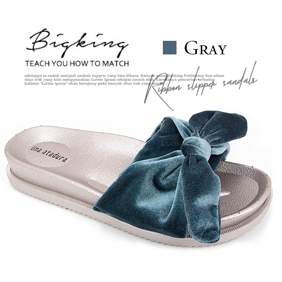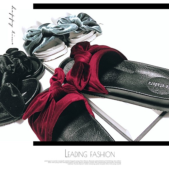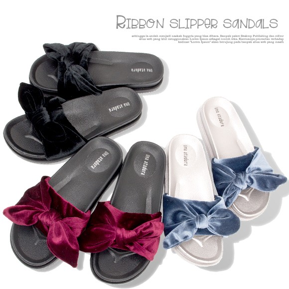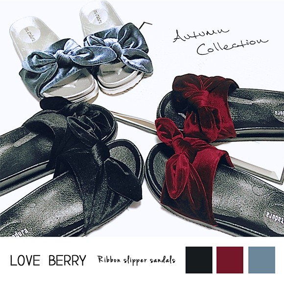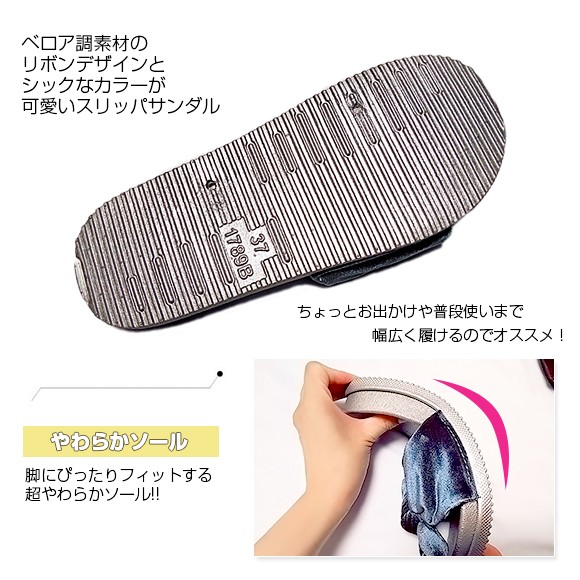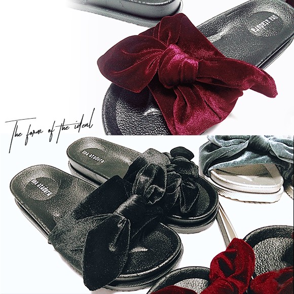 ベロア調素材のリボンが可愛いスリッパサンダルです♪