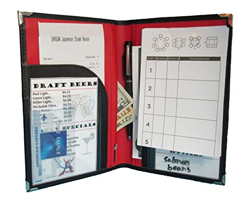 7 POCKET ORGANIZER - 7 different pockets to organize credit card receipts, order pad, cash tips, on hand menus, and anything to make the life of a server easier