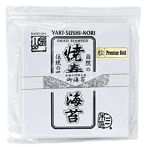 Kaneyama Yaki Sushi Nori/Dried Seaweed, Vacuum Packed/Re-Sealable, Premium Gold Grade, Full, 50 Sheets