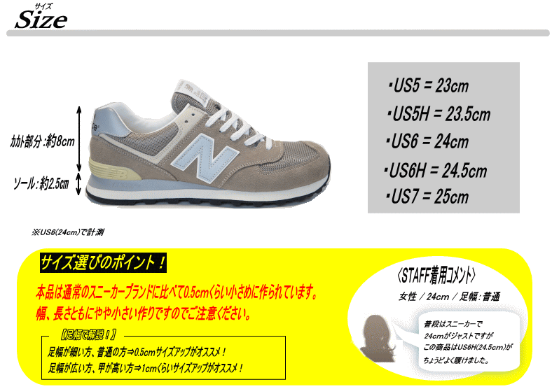 | サイズ | 作り⇒やや小さめ 【サイズ選びのポイント!】 足幅が細い方、普通の方⇒0.5cmくらいサイズアップがオススメ! 足幅が広い方、甲が高い方⇒1.0cmくらいサイズアップがオススメ! |
