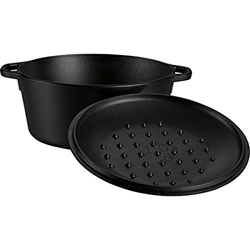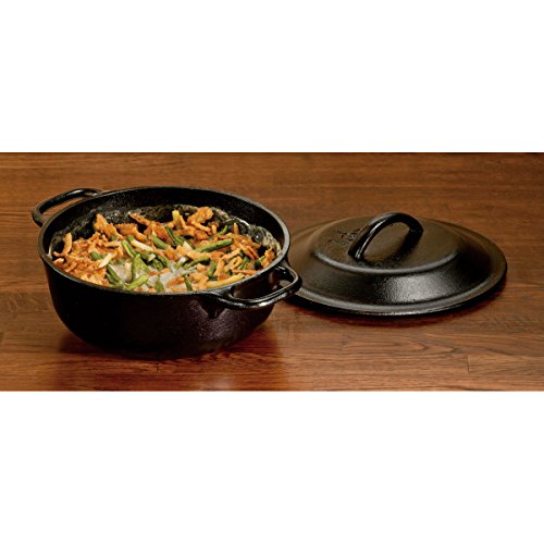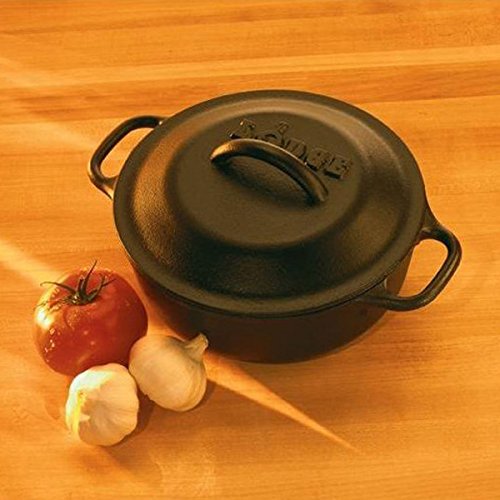 Amazon.com Review There are lots of fancy cookware materials out there but cast iron still trumps them all with its even heating, heat retention, price, and duration. It’s these traits that make Lodge cookware favored by both indoor chefs and campfire cooks alike. The caveat is being able to lift cast iron cookware and, at 8 pounds, this serving pot will give most chefs a workout. The pot measures 8 inches in diameter and 2-7/8 inches deep and comes with a matching 8-inch iron cover. The pot arrives ready to simmer up to 2 quarts of baked beans, soup, or stew and goes right from stovetop to tabletop for serving. While it usually takes years of cooking to burn on the prized finish that makes cast-iron cookware smooth and stick-free, the Logic line of cookware comes pre-seasoned to save you some work. Cast iron pots in this line are coated in a vegetable oil, which is then baked on in a hot industrial oven to obtain that blackened patina and silky surface. Logic cookware has plenty of fans, including the editorial staff at Good Housekeeping, who cited it as one of the best new products of the year at the 2003 Good Buy Awards. --Cristina Vaamonde