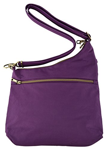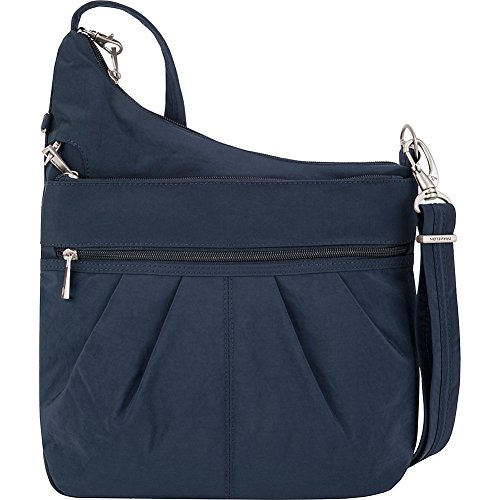 Main compartment has RFID blocking card and passport slots and includes tethered key clip with LED light
