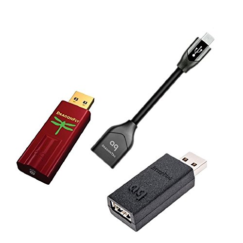 AudioQuest Dragonfly Red v1.0 USB DAC with Jitterbug USB Data and Power Noise Filter Package with Dragontail USB 2.0 Extender for Android