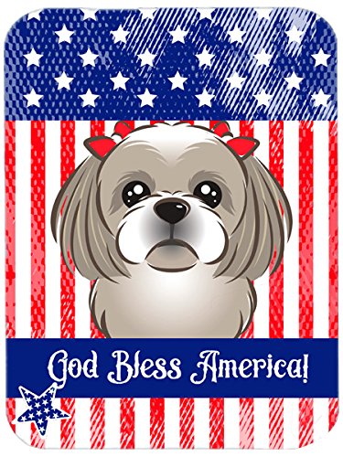 Caroline's Treasures BB2180LCB "God Bless American Flag with Gray Silver Shih Tzu" Glass Cutting Board, Large, Multicolor